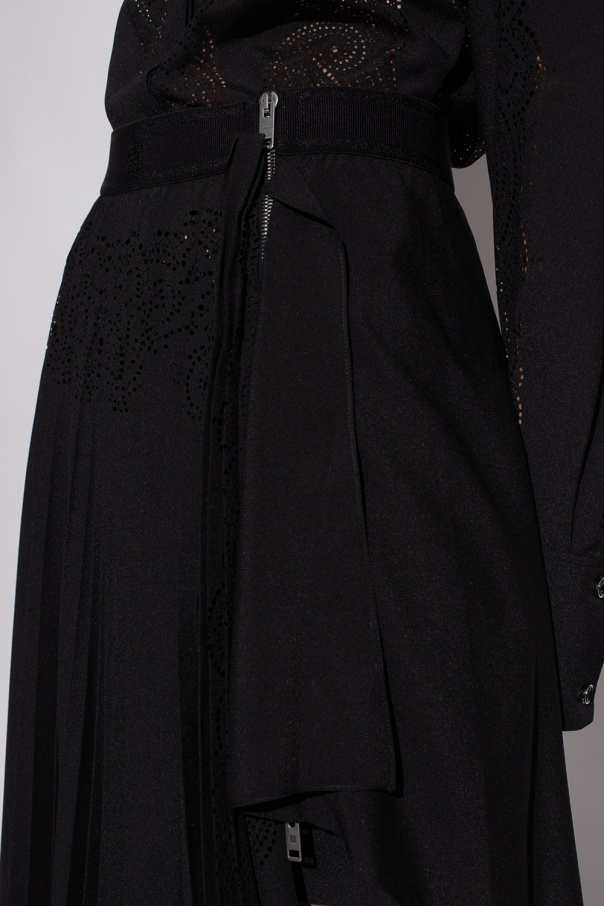 Black pleated skirt from Givenchy. Fastened with a two-way zip, this asymmetrical design features an elastic waistband and a perforated pattern.