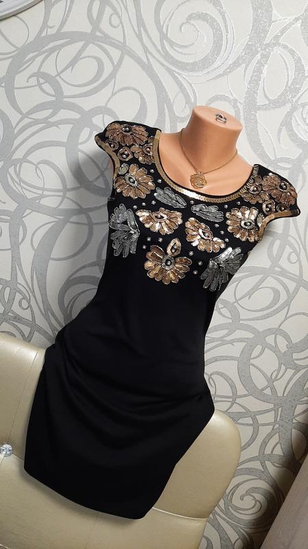 Красивое мини платье по фигуре,вышитое паетками,сзади застегивается на молнию,ткань эластичный плотный трикотаж