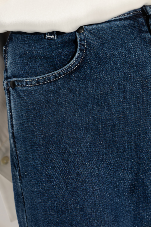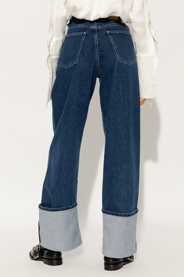 Dark blue jeans from BITE Studios. Fastened with a zip and button, this straight leg pair features a brown logo-embossed patch at the back, two front pockets, two back pockets and turn-up cuffs.