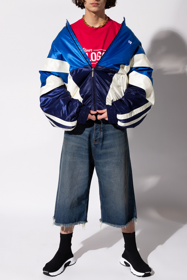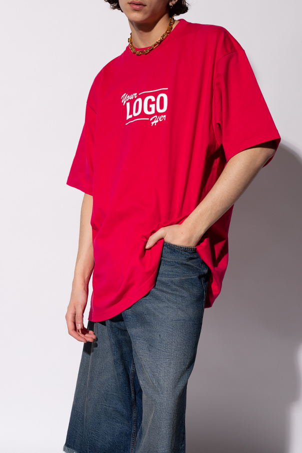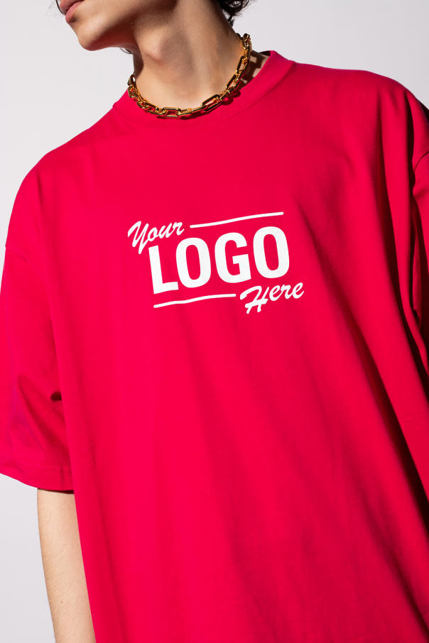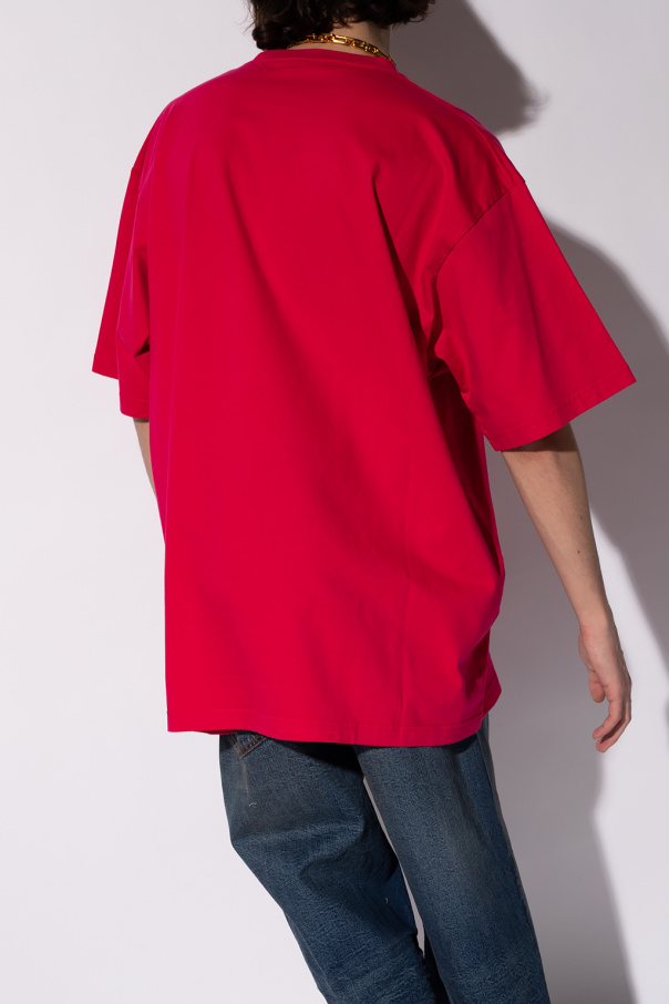 Red crewneck T-shirt from Balenciaga. Made of cotton, this design is complete with a printed pattern in white.