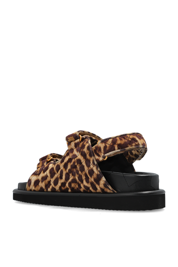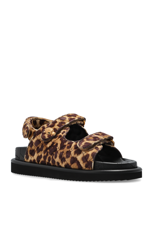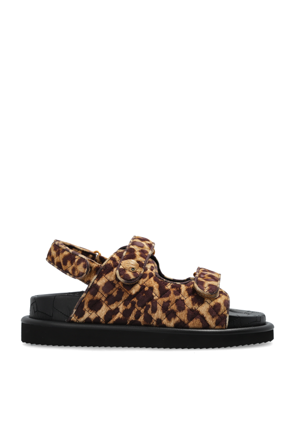 Discover the Orson Sandals from the exclusive collection, a testament to Kurt Geiger\'s unparalleled craftsmanship. These exquisite sandals feature an alluring animal skin pattern in sumptuous shades of brown, with a dominant leopard motif that exudes opulence. The carefully designed straps, adorned with the captivating leopard print, are crafted from high-quality leather, ensuring a luxurious aesthetic. The sandals boast two wide velcro straps for adjustable comfort and a supplementary strap at the heel for a secure fit. The flat black sole, constructed from durable rubber, promises unparalleled comfort with every step. A detail that cannot go unnoticed is the brand name \"Kurt Geiger\" embossed on the insole, epitomizing exclusivity and style. Perfectly suited for both casual and refined ensembles, these sandals are a versatile addition to any sophisticated wardrobe. Why Choose This Product? Exquisite animal print design for a luxurious look. Adjustable velcro straps for a personalized fit. Durable rubber sole for enhanced comfort. Exclusive Kurt Geiger branding for added prestige.
