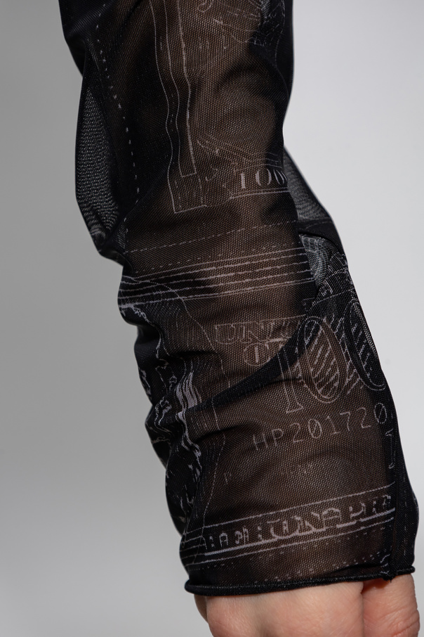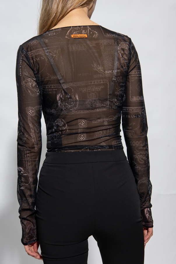 Black patterned body from Heron Preston. Fastened with snap buttons, this round neck design features a bill motif and logo patch at the back.