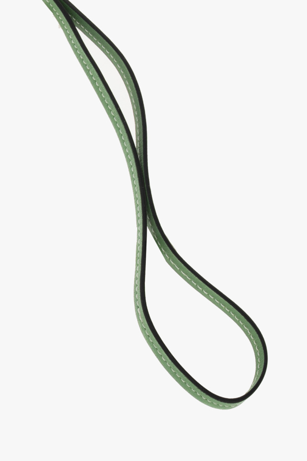 Green card case from JW Anderson. Made of leather, this item employs a neck strap and six card slots and showcases an embossed logo.