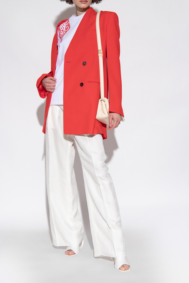 White ‘Astro’ heeled mules from FERRAGAMO. Made of leather, this pair features a logo print, monogram-shaped heel and white leather sole.