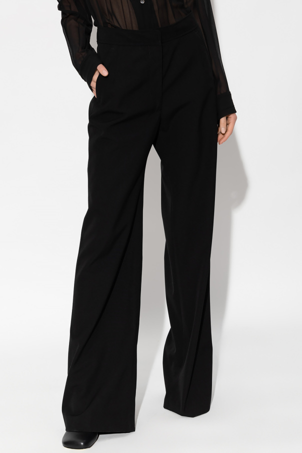 Black straight leg trousers from Dries Van Noten. Made of a wool blend, this pair features a hook, button and zip fastening as well as two front pockets.