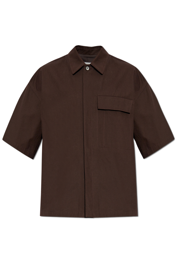 Introducing the Dark Brown Pocket Shirt from the illustrious JIL SANDER+ collection. This sartorial masterpiece is a testament to refined casual elegance, crafted with the esteemed precision synonymous with the JIL SANDER+ name. Rendered in a sumptuous dark brown hue, this shirt exudes a relaxed yet sophisticated aura, ideal for those who cherish both comfort and style. The shirt boasts a loose, casual fit with short sleeves, complemented by a classic collar and discreet button closure with a covered placket, ensuring a sleek appearance. A distinctive large flap pocket adorns the left chest, adding a touch of utility to its aesthetic appeal. Crafted from 100% premium cotton, it promises unparalleled comfort and durability, making it a quintessential piece for nature enthusiasts and city dwellers alike. Why choose this product? Designed by the renowned JIL SANDER+ Luxurious dark brown hue Casual, relaxed fit with a classic touch Premium 100% cotton fabric Functional large flap pocket