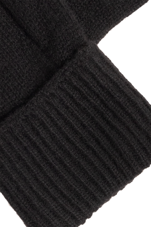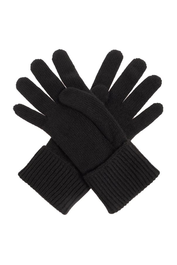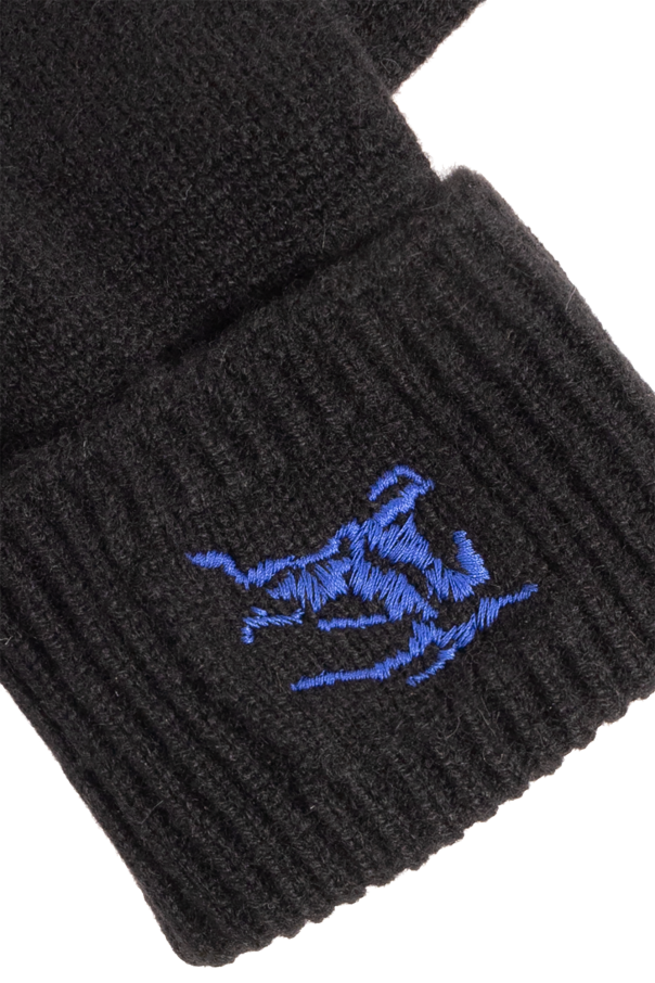 Black gloves from Burberry. Made of cashmere, this item is decorated with a blue logo embroidery.