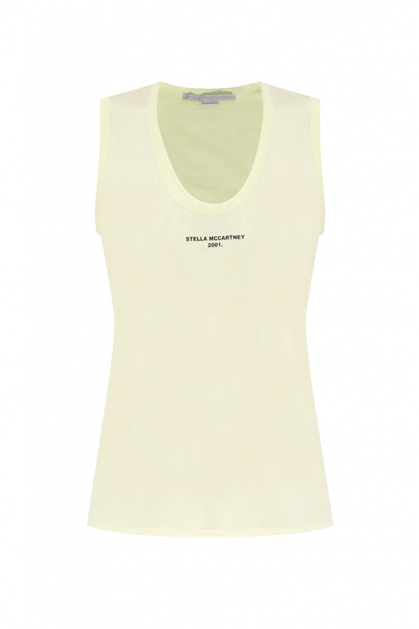 Yellow sleeveless T-shirt from Stella McCartney. Made of cotton, this design features a printed logo pattern in black and a ribbed round neck.