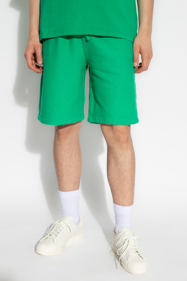 Green shorts from Champion. Made of cotton, this pair features an elastic drawstring waistband, logo patch and two slip pockets.