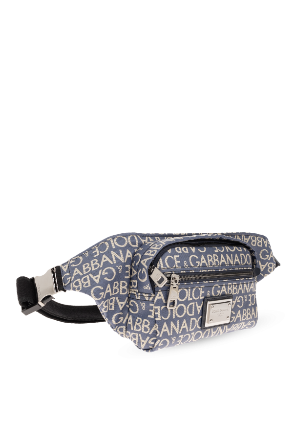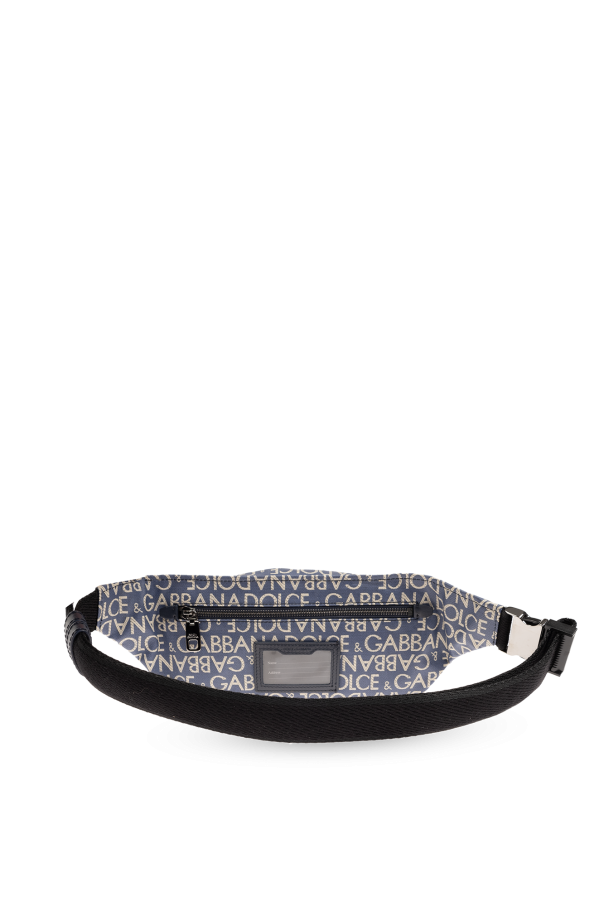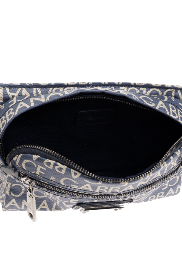 Blue ‘Nero Sicilia DNA Small’ belt bag from Dolce & Gabbana. Made of fabric, this design features a two-way zip, jacquard logo pattern, zipped front pocket, logo-engraved details in silver-tone metal, zipped pocket and slip pocket at the back as well as an adjustable strap with a metal buckle and one internal compartment.