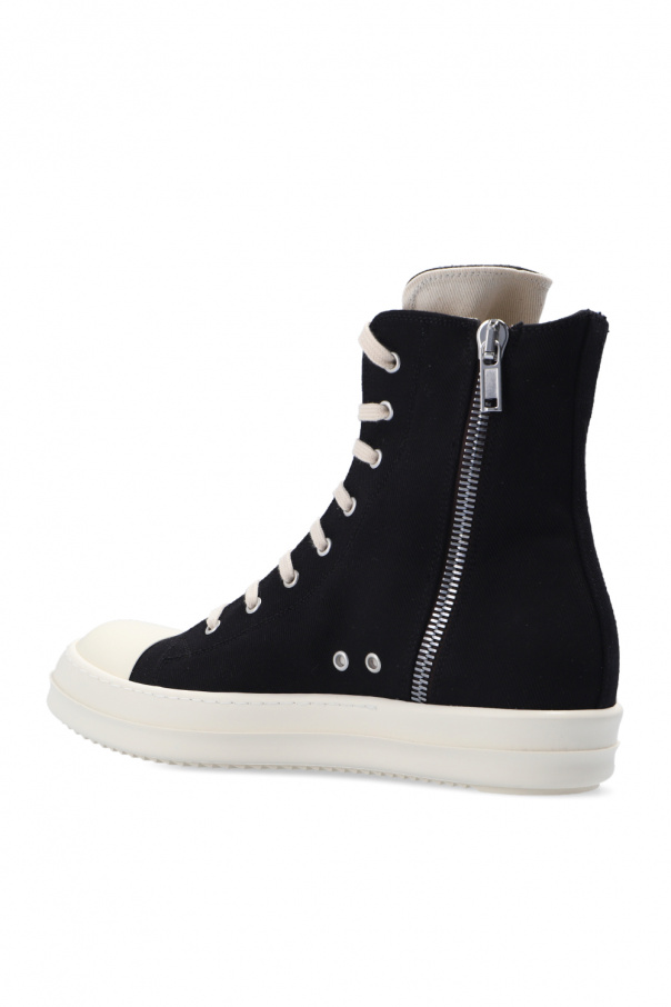 Black sneakers from Rick Owens DRKSHDW. Boasting a high-top silhouette, this lace-up model features a fabric upper with a leather insert, a side zip fastening, logo embroidery and a white rubber sole.