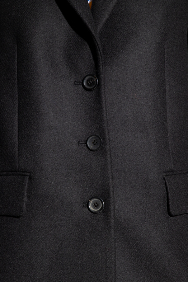 Black coat from PS Paul Smith. Crafted from a wool and cashmere blend, this style features button fastenings, notch lapels, two flapped pockets, a single back vent and long sleeves with button cuffs.