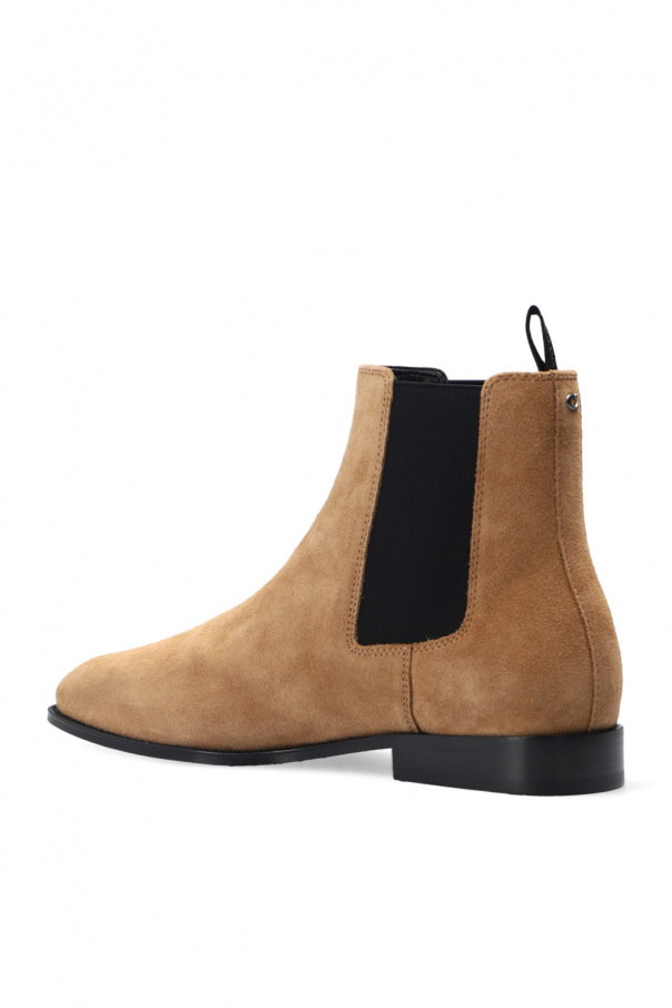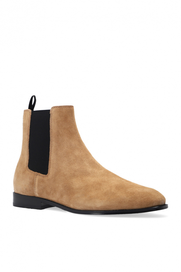 Beige ‘Metropolitan’ Chelsea boots from Coach. Crafted from suede, this model sits on a black leather sole and features black elastic panels on the sides and a logo application on the back.