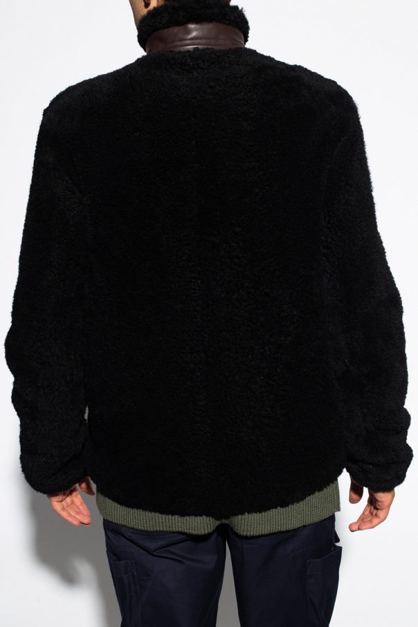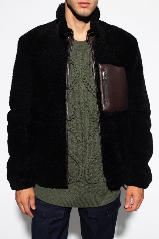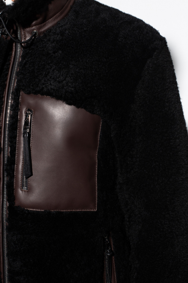 Black and brown fur jacket from Loewe. Crafted from lamb leather, this garment fastens with a zip and has long sleeves, a drawstring hem and three zip pockets.