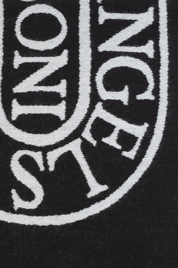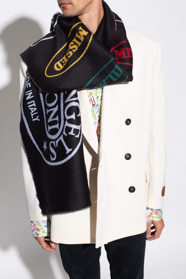Black scarf from Palm Angels x Missoni. Crafted from wool with a colourful logo pattern, this item features fringe detailing on the edges.