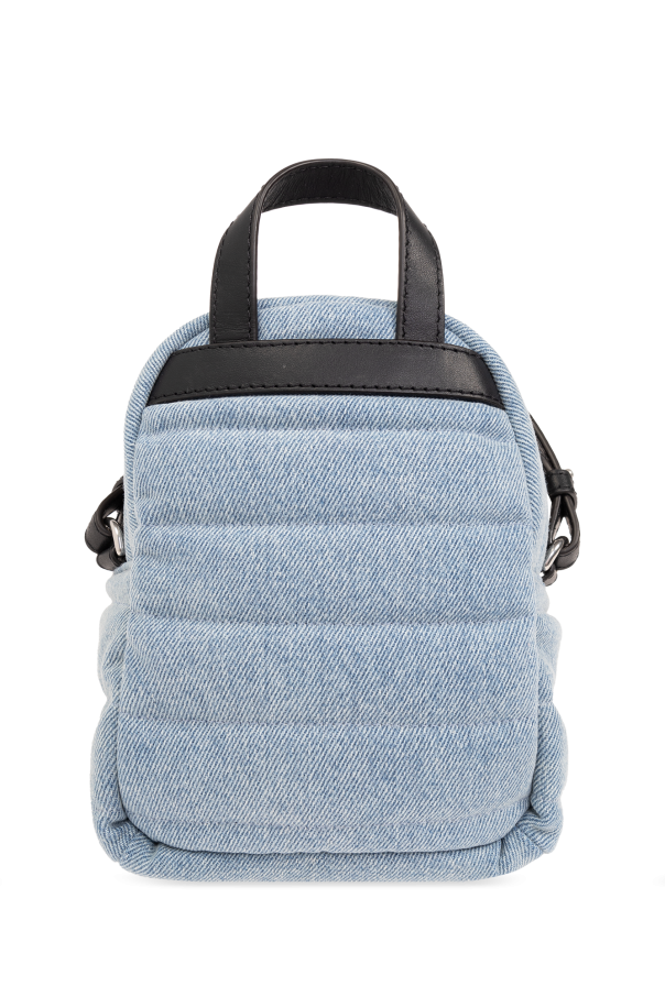 Light blue ‘Kilia Small’ quilted shoulder bag from Moncler. Made of denim with black leather trims, this model features a zip fastening, a patch, logo detail, zip pocket, short handle, detachable and adjustable shoulder strap, silver-tone metal hardware and one internal compartment with one card slot.