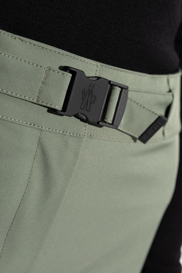 Introducing the MONCLER GRENOBLE HIGH PERFORMANCE ski pants, a quintessential piece from the exclusive Moncler Grenoble collection, crafted for those who seek both style and functionality on the slopes. Imbued with an elegant khaki hue, these pants are meticulously designed with a technical fabric blend, ensuring resilience against the elements while maintaining a sleek aesthetic. The classic ski silhouette features wide legs designed to effortlessly drape over ski boots, offering unrestrained movement. A sophisticated adjustable buckle at the waist, adorned with the subtle Moncler logo, accentuates the tailored fit, while black reinforcements at the cuffs provide added protection against snow and abrasion. Accentuated by the Moncler emblem at the hem, these pants are an ode to the brand’s commitment to high fashion and performance. With a zip, snap, hook, and belt closure, they promise both security and style, making them an indispensable addition to any winter wardrobe. Why Choose This Product? Exquisite design by Moncler Grenoble, a symbol of luxury and innovation. Technical fabric blend offering unmatched protection and comfort. Adjustable waist for a personalized fit. Functional and fashionable, perfect for avid skiers and style enthusiasts.