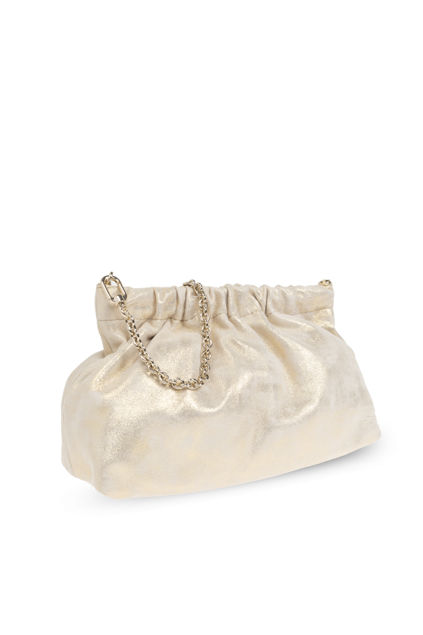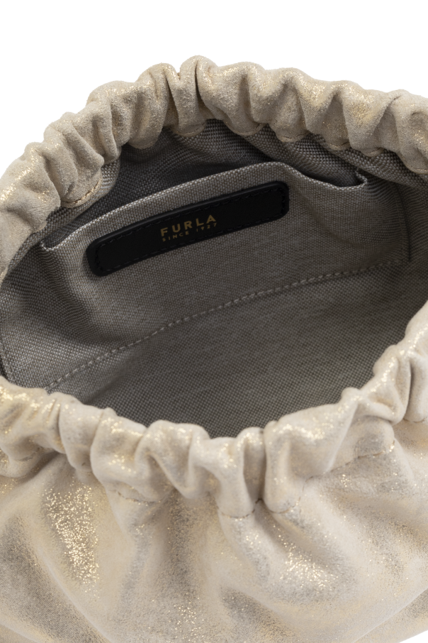 Introducing the Nuvola Mini, a luminous shoulder bag from the illustrious Italian brand, Furla. Renowned for their exquisite fusion of classic and contemporary design, Furla has crafted this masterpiece, epitomizing both simplicity and sophistication. This elegant accessory flaunts a softly gathered, sack-like silhouette, accentuated by its minimalist allure. The exterior is crafted from a radiant, gold leather, bestowing an opulent quality, while the interior is lined with durable polyester. The bag is adorned with a robust, yet refined gold chain strap, harmoniously merging form and function. A discreet magnetic closure adds an element of practicality, while a slip pocket inside ensures functionality without compromising elegance. Why Choose This Product? Exquisite design by the iconic Furla, symbolizing luxury and innovation. Perfect for evening ensembles, combining understated elegance with modern flair. Features a sturdy gold chain strap and a subtle branded tag inside. Practical with a magnetic closure and an interior slip pocket for essentials.