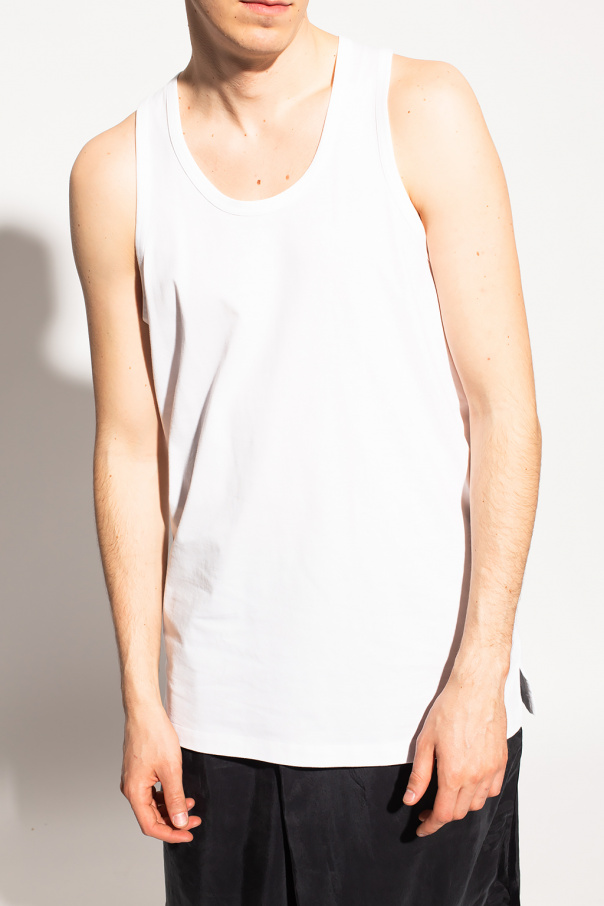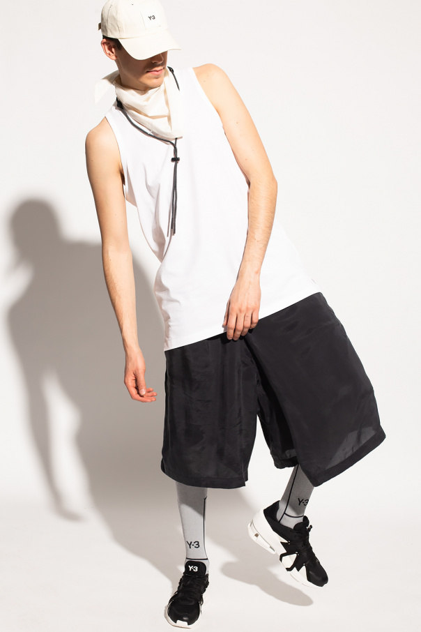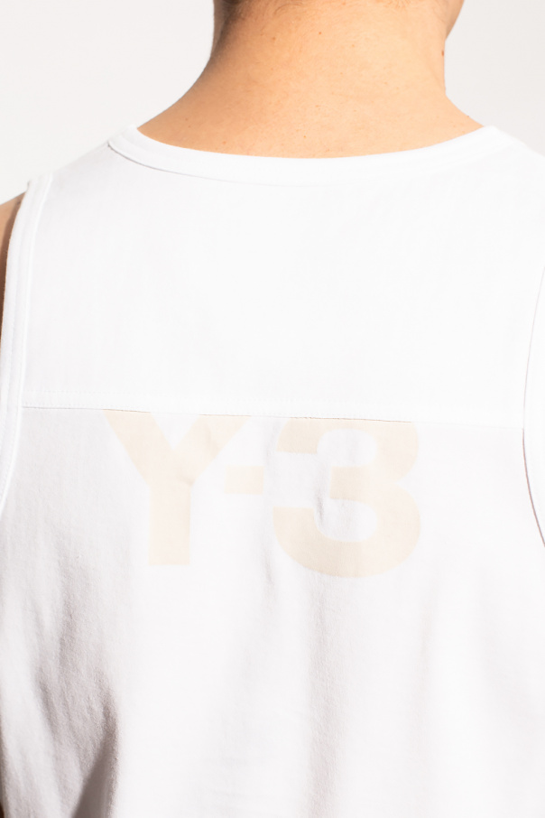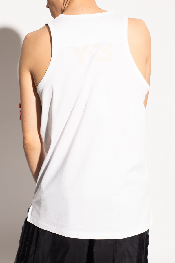 White sleeveless top from Y-3 Yohji Yamamoto. Made of cotton, this round neck design is decorated with a logo print.