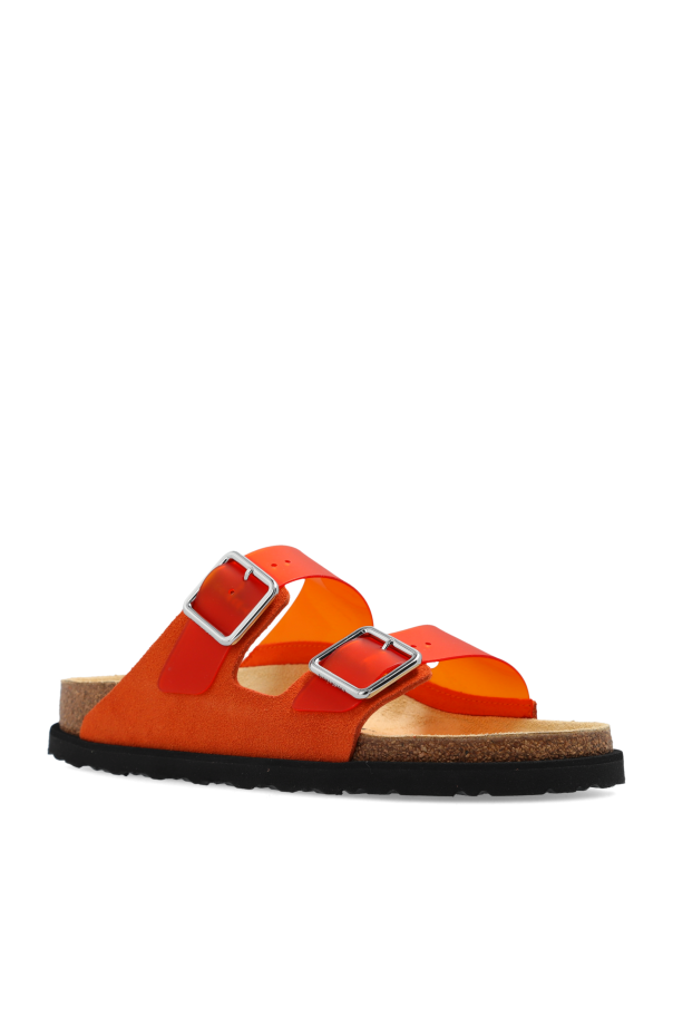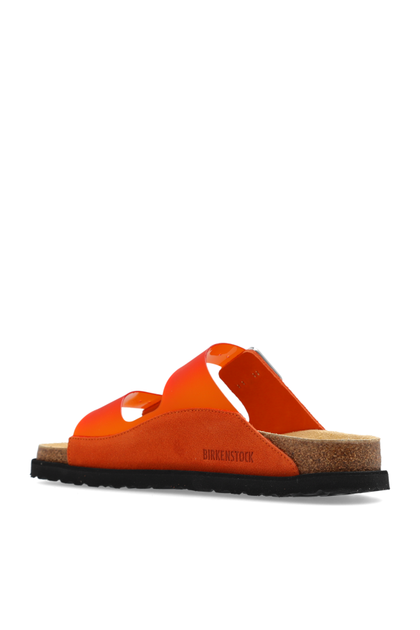 Introducing the Birkenstock 1774 Arizona PVC Slides in a vibrant orange hue, a testament to minimalist elegance and functional design. Crafted with the discerning eye of Birkenstock 1774, these slides strike a perfect balance between aesthetic appeal and practical wearability. The broad straps, adorned with distinctive metal buckles, offer adjustable fitting while proclaiming the slides\' identity with their bold color and smooth, possibly synthetic finish. The ergonomic sole, seemingly crafted from a cork-like composite, promises unparalleled comfort and support, making every step a pleasure. A flat interior lined with a leather or its high-quality imitation further enhances the comfort, ensuring these slides are not only a statement piece but a staple for effortless, everyday wear. The underfoot bears the mark of authenticity, with size, model, and series number subtly embossed, hinting at the slides\' exclusivity and attention to detail. Why Purchase These Birkenstock 1774 Arizona PVC Slides? Ergonomic design for ultimate comfort and support. Iconic orange hue and metal buckles, making a bold fashion statement. High-quality materials including leather and a durable 100% rubber sole. Versatile styling options, complementing both casual and more sophisticated looks. Limited edition design from the renowned Birkenstock 1774 collection.