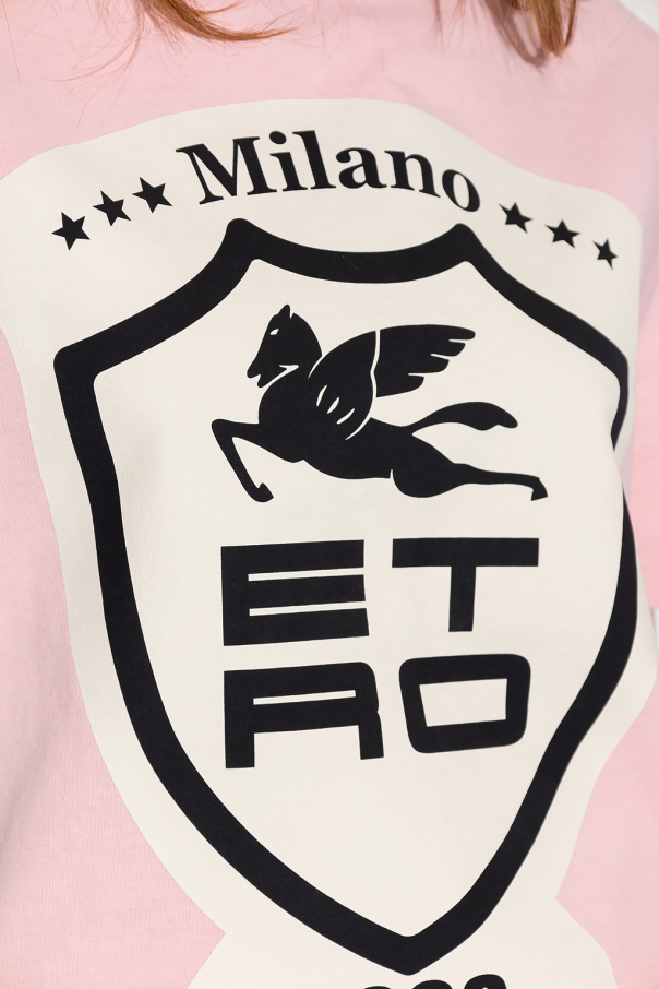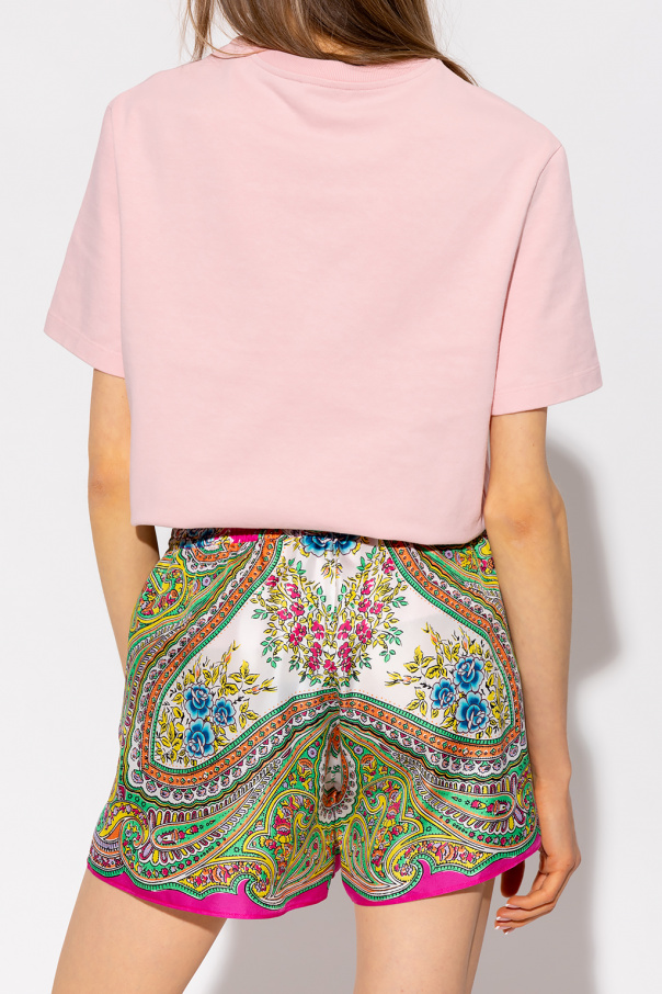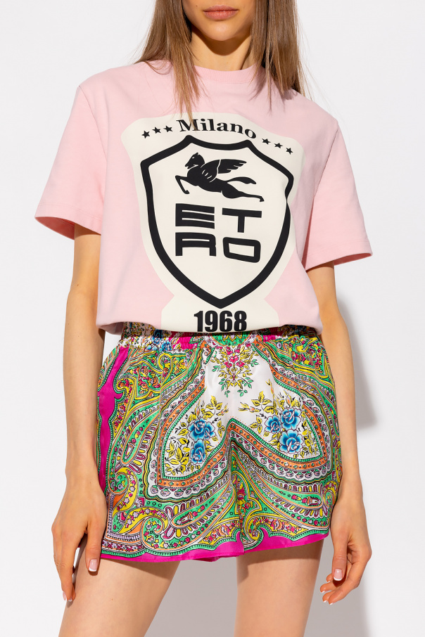 Pink loose-fitting T-shirt from Etro. Made of cotton, this short sleeve design features an ‘ETRO CUBE’ logo print in cream and black as well as a ribbed crew neck.