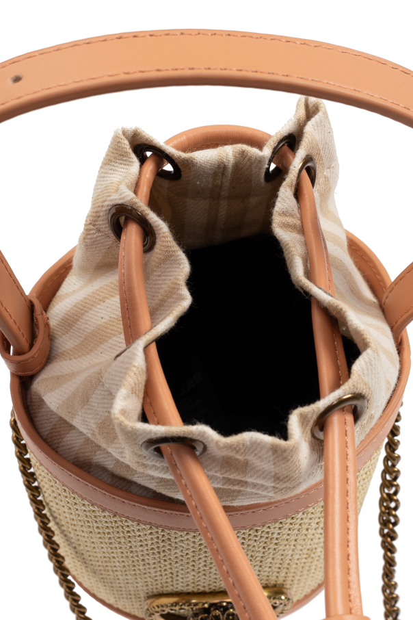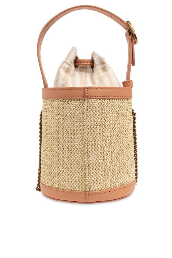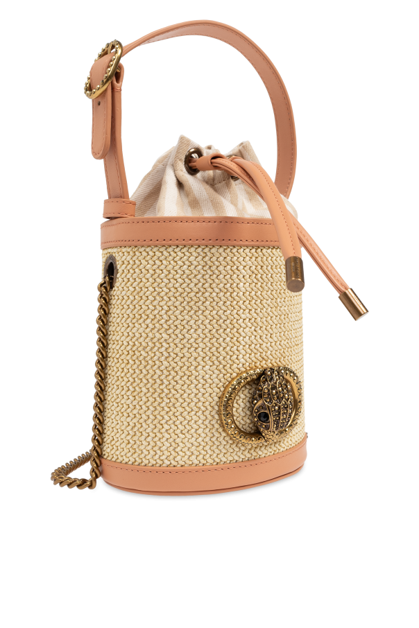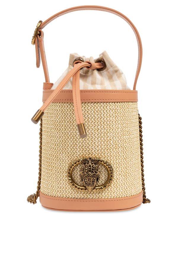 Introducing the Chelsea Small Bucket Bag from the illustrious Kurt Geiger collection. This exquisite piece epitomizes sophistication with its distinctive cylindrical shape, masterfully crafted from woven material, exuding an air of refined summer elegance. The bag’s principal fabric showcases a beige hue, seamlessly paired with light leather trimmings and strap, lending it a luxurious touch. A striking gold chain complements the shoulder strap, while the front displays a gold-toned designer logo, a testament to its premium pedigree. Inside, a drawstring fabric pouch, complete with leather cords and metallic accents, ensures the security of your essentials. The dominant beige, coupled with a hint of orange leather, makes this an adaptable accessory, perfect for both everyday adventures and opulent events. Why Choose This Product? Timeless bucket design for a classic yet modern look. Premium materials: woven fabric and leather for durability and elegance. Distinctive gold accents for a touch of opulence. Versatile color palette to complement any wardrobe. Created by Kurt Geiger, a brand synonymous with style and innovation.