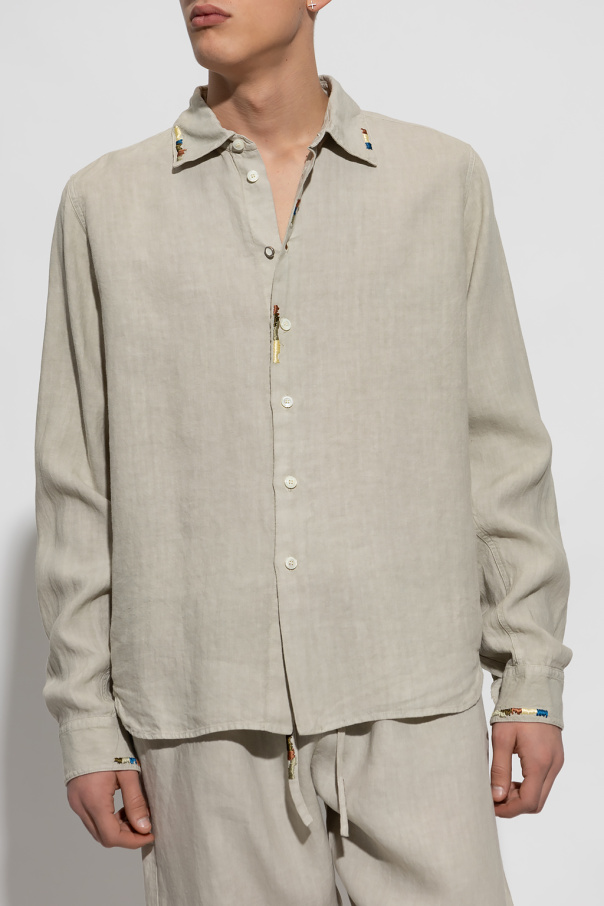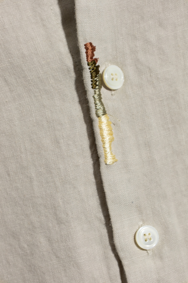 Light grey shirt from Nick Fouquet. Made of linen, this design features decorative multicolored stitching and long sleeves with buttoned cuffs.