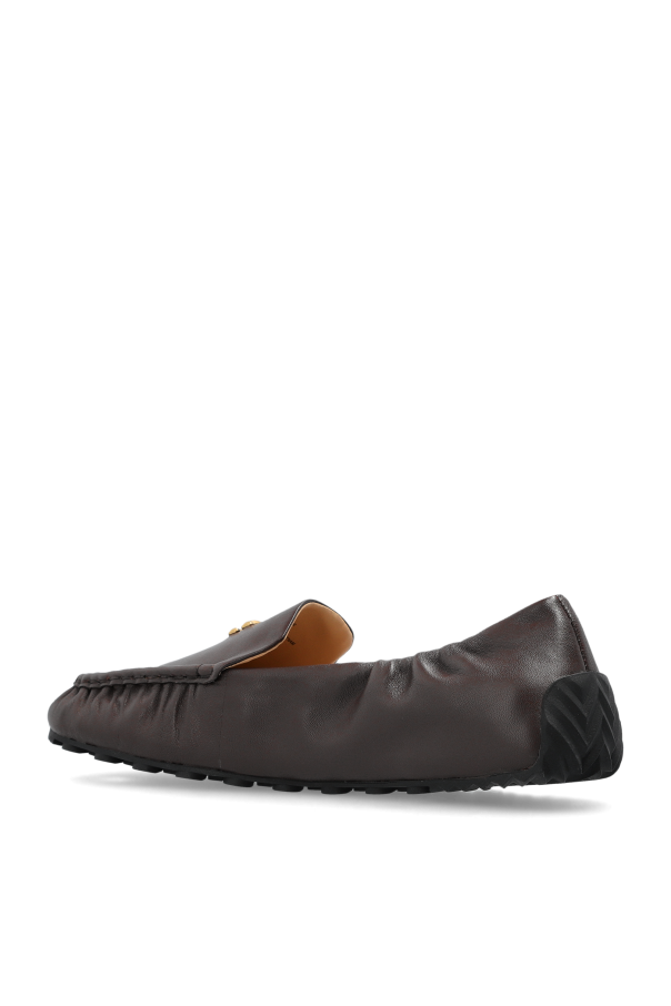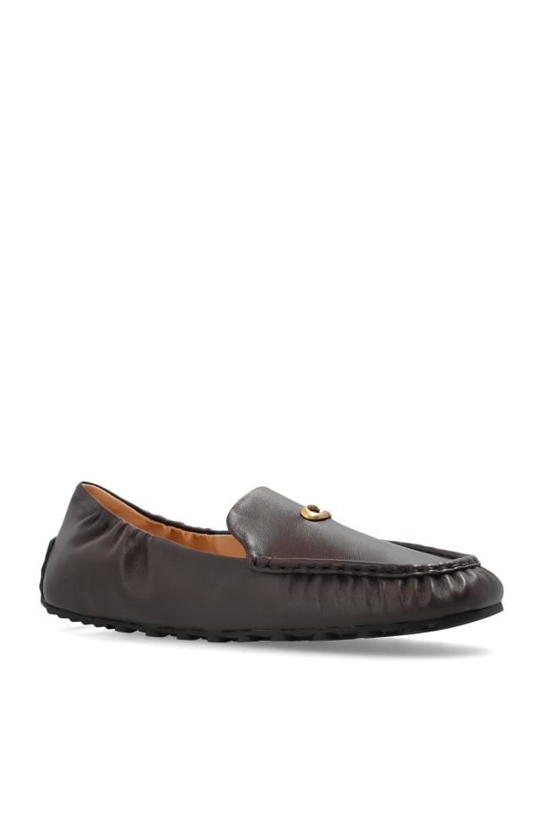 Introducing the \'Ronnie\' Loafers by Coach, an epitome of understated elegance and timeless design. Crafted meticulously from high-quality leather, these brown loafers boast a classic rounded silhouette with a smooth finish. The front is adorned with a distinctive gold embellishment in the shape of a \"C\", adding a touch of sophistication that is quintessential to the brand. The rubber sole ensures both comfort and superior grip, making these loafers a perfect companion for daily wear. Inside, the shoes are lined with a light-toned material, enhancing their luxurious appeal. Coach, a revered name since 1941, embodies the spirit of American craftsmanship under the visionary leadership of Stuart Vevers. The brand stands for quality, innovation, and the satisfaction of its discerning clientele, making it a symbol of American independence and style. Why Choose This Product? Classic design with a modern twist High-quality leather for durability Distinctive gold embellishment Comfortable rubber sole