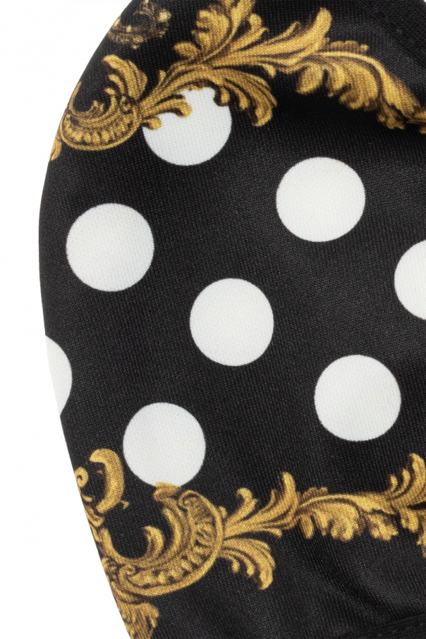 Black patterned mask with a logo in yellow and white from Dolce & Gabbana.