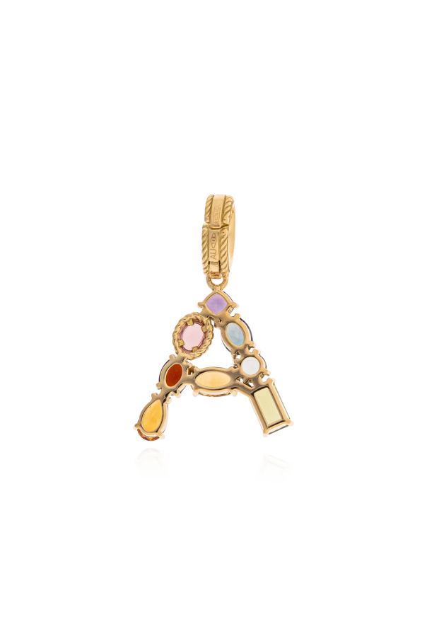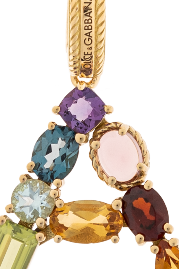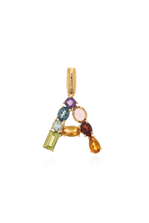 Embark on a journey of elegance with the Dolce & Gabbana Gemstone Pendant, a masterpiece that redefines opulence. Crafted in exquisite 18-karat yellow gold, this pendant is a harmonious blend of artistry and luxury. The pendant artfully forms the letter \"A\" through a stunning array of gemstones including peridot, topaz, granat, ametyst, and cytryn, each set in a multicolored symphony of hues such as vibrant blues, lush greens, and deep purples. The intricate gold detailing celebrates the rich heritage of Sicilian warmth, enhancing its allure. Adorned with the emblematic \"Dolce & Gabbana\" inscription, this pendant is not just jewelry, but a symbol of exquisite craftsmanship and timeless elegance. The intricate design, featuring twisted thread treatments and smooth finishes, offers a unique tactile experience. Why Choose This Product? Exceptional Craftsmanship: Meticulously crafted with attention to detail in Italy. Luxurious Materials: 18-karat gold with a vibrant array of gemstones. Iconic Design: Signature Dolce & Gabbana aesthetic with a unique letter \"A\" motif. Versatile Elegance: Perfect for both daily wear and special occasions.
