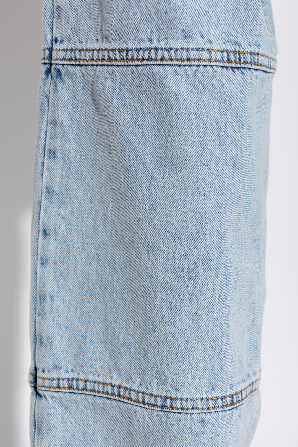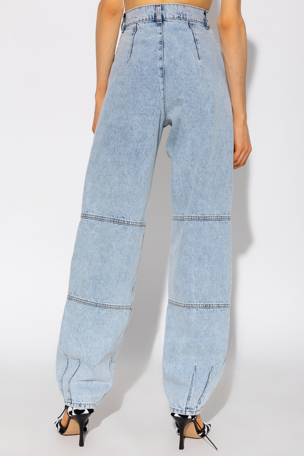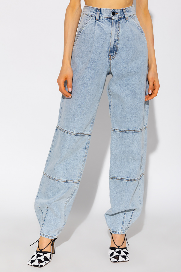 Light blue ‘Barga’ jeans from The Mannei. Falling with wide legs that taper towards the ankles, this pair features a zip fly with a button, a vintage treatment, two slip pockets and distinctive stitching details.