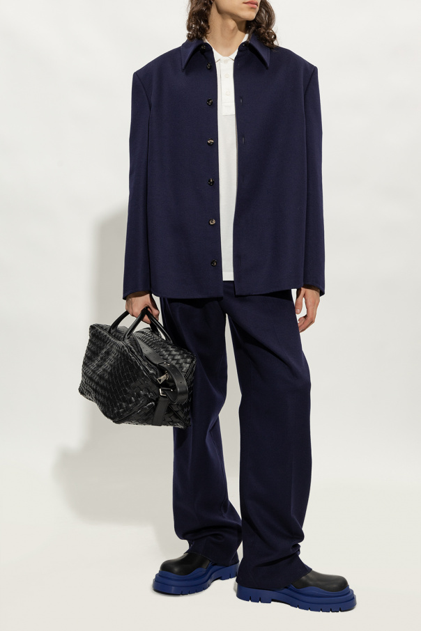Black ‘Tire’ ankle boots from Bottega Veneta. Made of leather, this slip-on pair features elastic side panels and navy rubber sole.