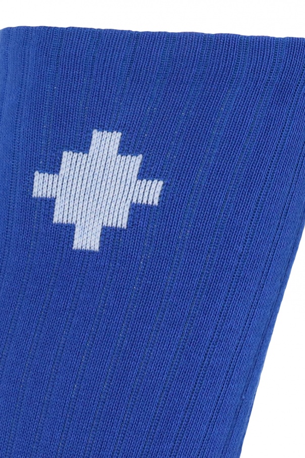 Blue socks from Marcelo Burlon. Featuring a rib-knit design, they employ an embroidered white logo of the designer.