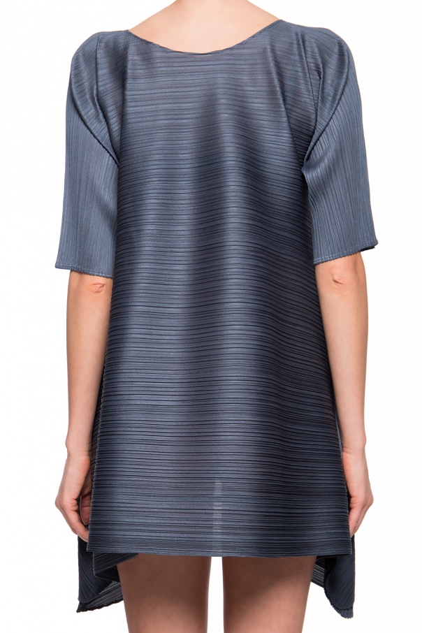 Black pleated dress from Issey Miyake Pleats Please. Short sleeves. Fastened with drawstrings.