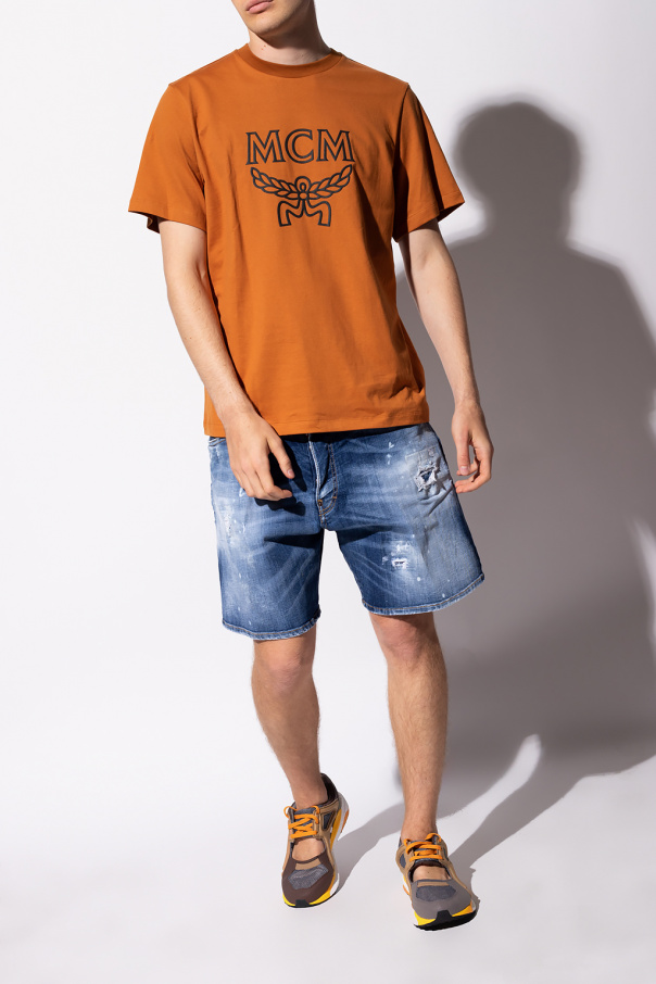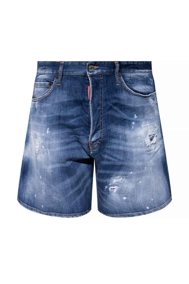 Navy blue and blue denim shorts from Dsquared2. Crafted from cotton with a faded-effect, this pair features button fastenings, classic five pockets and a red patch with a black logo on the back.