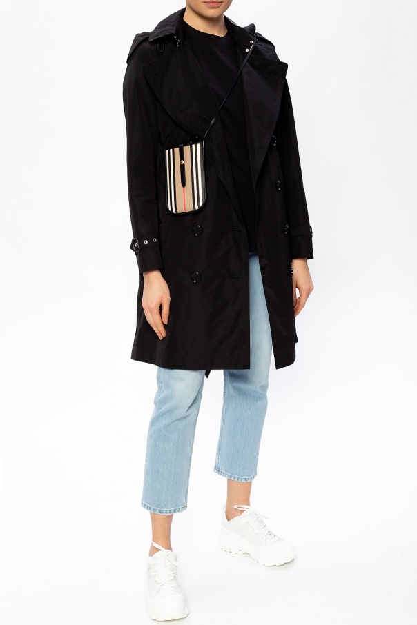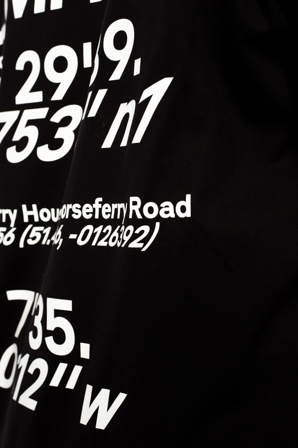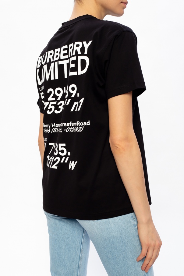 Black T-shirt from Burberry. Crafted from cotton, this short sleeve design features a ribbed round neck and a printed logo pattern in white.