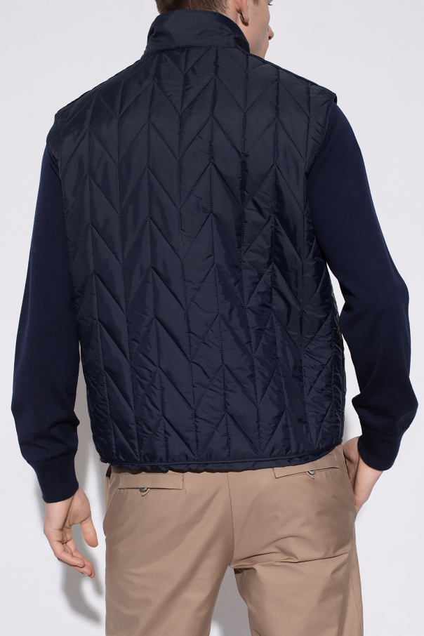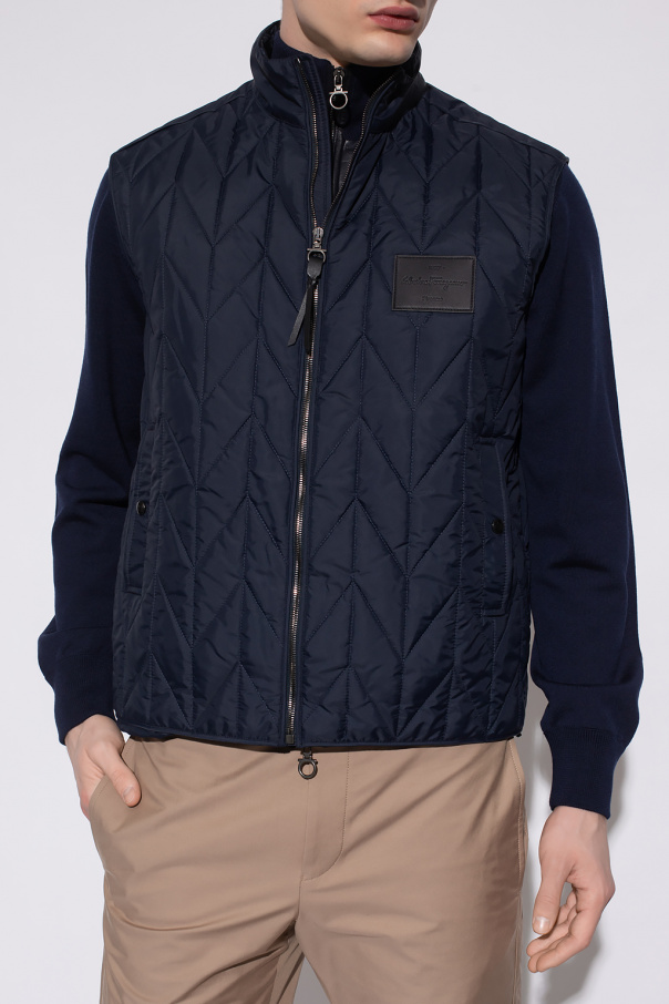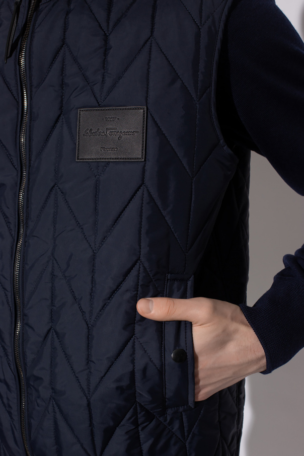 Navy blue quilted vest from FERRAGAMO. Emblazoned with a logo-embossed patch, this style features a zip fastening, two snap-fastened pockets and a drawcord-adjustable hem.