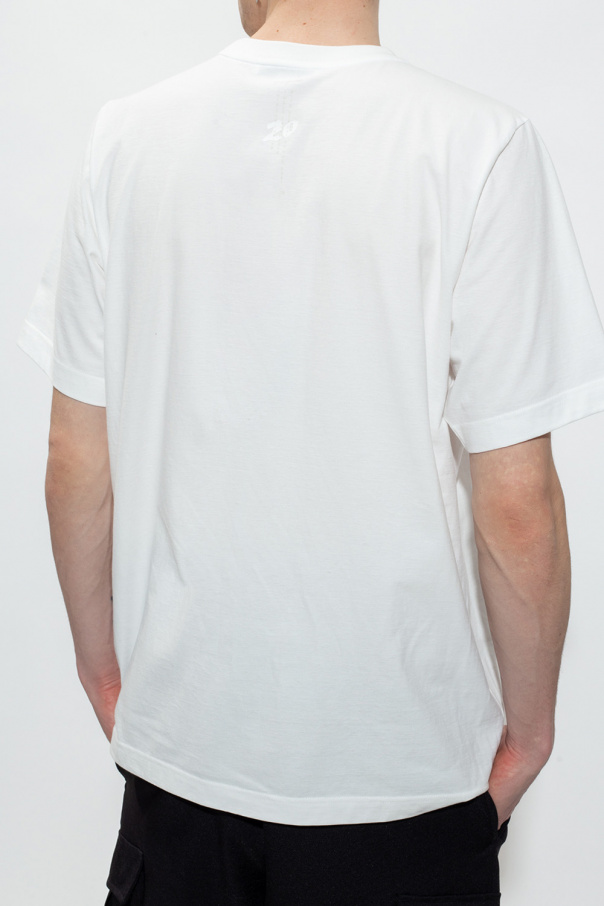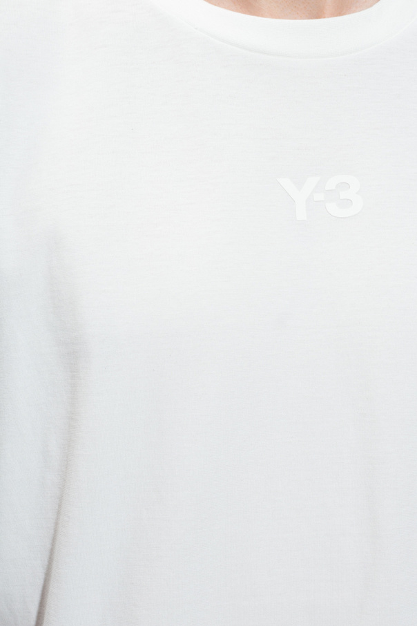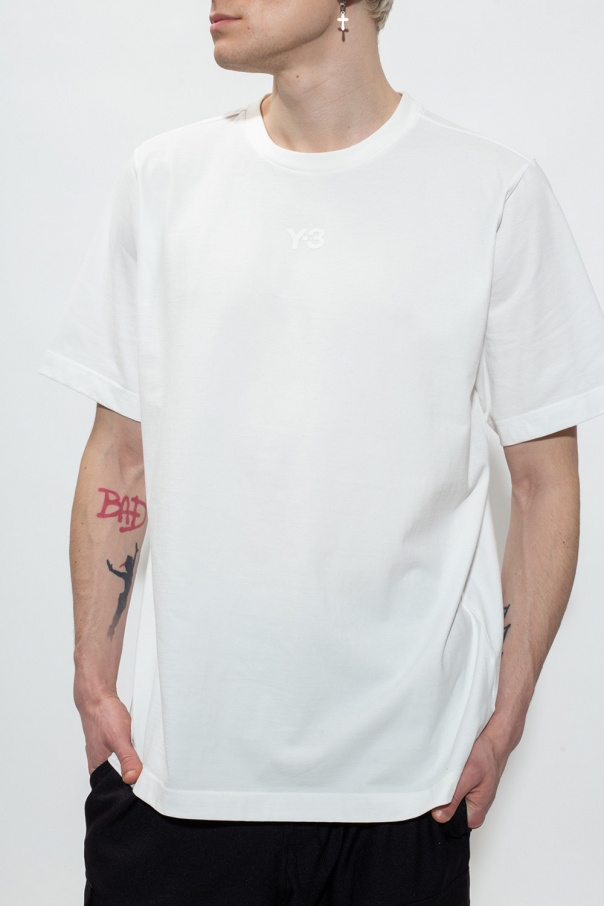 White crewneck T-shirt from Y-3 Yohji Yamamoto. Made of cotton, this short sleeve design is enriched by a white logo print on the front and raised logo at the back.