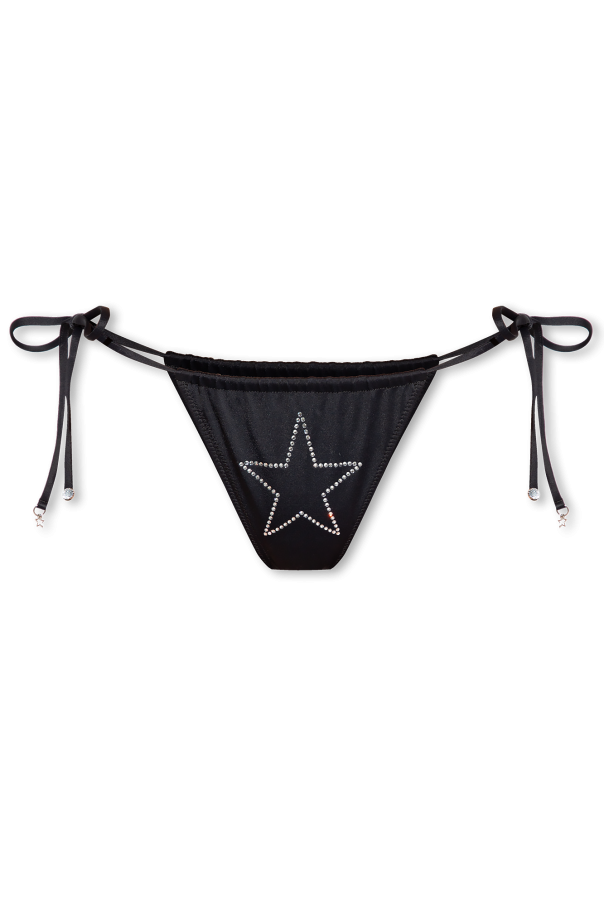 Black bikini bottom from Stella McCartney. This design features a star-shaped shiny embellishment and side tie fastenings.