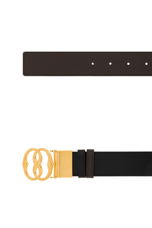 Reversible belt in brown and black from Bally. Made from leather, this item features a gold-tone metal buckle in the shape of a logo.