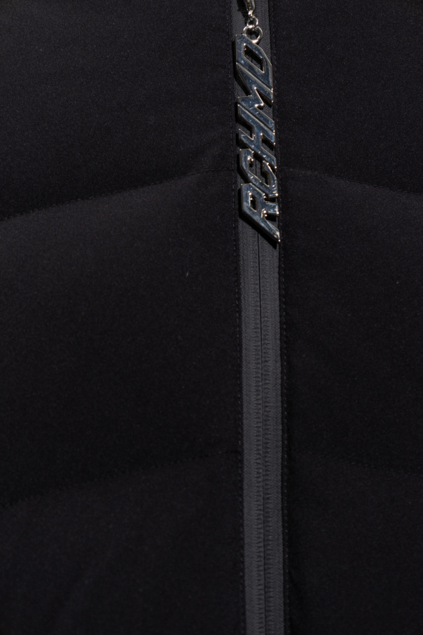 Black jacket with a drawstring hood from John Richmond, the ‘Sport’ line. Filled with duck down, this style features a zip fastening with a metal logo pendant, four zip pockets and long sleeves with elasticated cuffs.