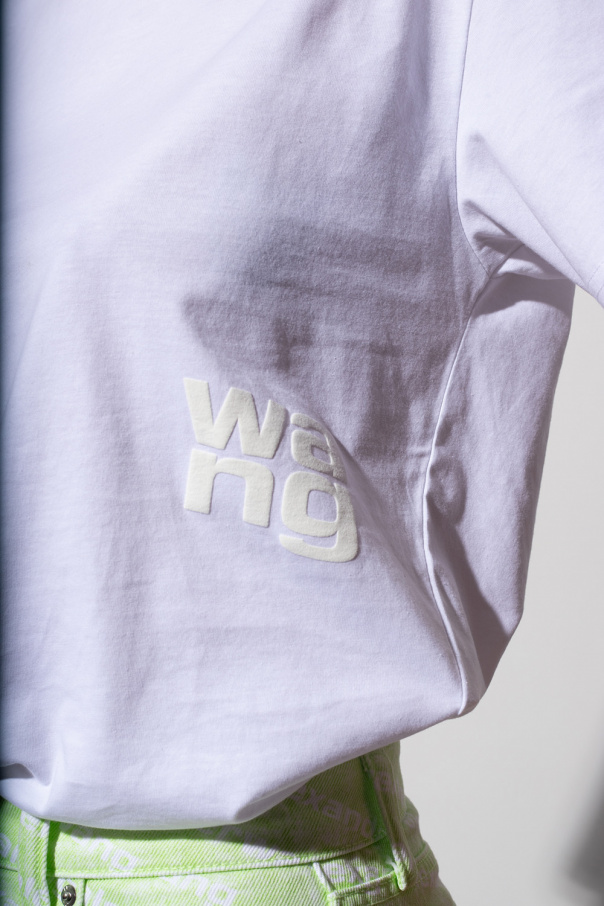 White crewneck T-shirt from Alexander Wang. Made of cotton, this style features short sleeves and a graphic print with the brand\'s logo on the front.