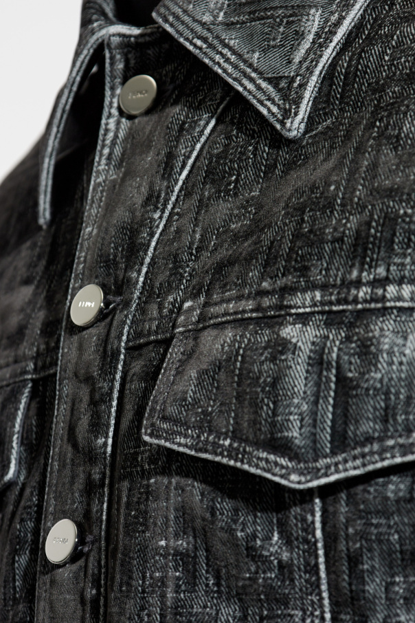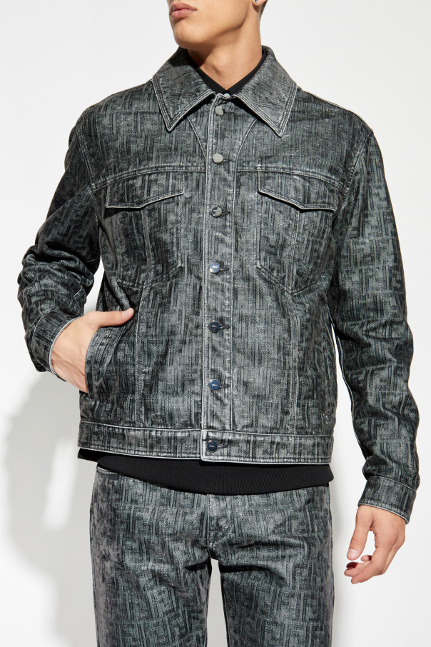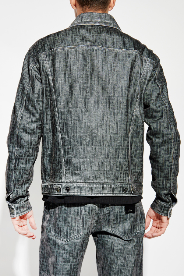 Introducing the Jeansowa Kurtka z Monogramem, an exclusive garment crafted by the illustrious house of Fendi. This piece exemplifies sophistication with its classic design and meticulous details. The jacket boasts a timeless silhouette with a straight-cut shape, complete with a collar and button closure. Its entire surface is adorned with a subtle yet distinctive monogram pattern, infusing the jacket with an air of effortless elegance. Constructed from premium quality denim, this jacket ensures durability while maintaining a classic aesthetic. The fabric features shades of gray with a slight distressed effect, adding a modern touch to the timeless design. Attention to detail is paramount, as evidenced by the two front chest pockets with buttoned flaps, and the addition of metal buttons engraved with the designer\'s logo. The carefully executed stitching further attests to the high level of craftsmanship. This jacket, in its distinguished gray hue, is part of the MEN, Clothing, JACKETS, DENIM collection, and pairs seamlessly with matching jeans for a cohesive and sophisticated ensemble. Why You Should Buy This Product Classic and timeless design with modern accents High-quality denim ensuring durability Elegant monogram pattern for a distinctive look Expertly crafted with meticulous attention to detail Designed by Fendi, a renowned name in luxury fashion