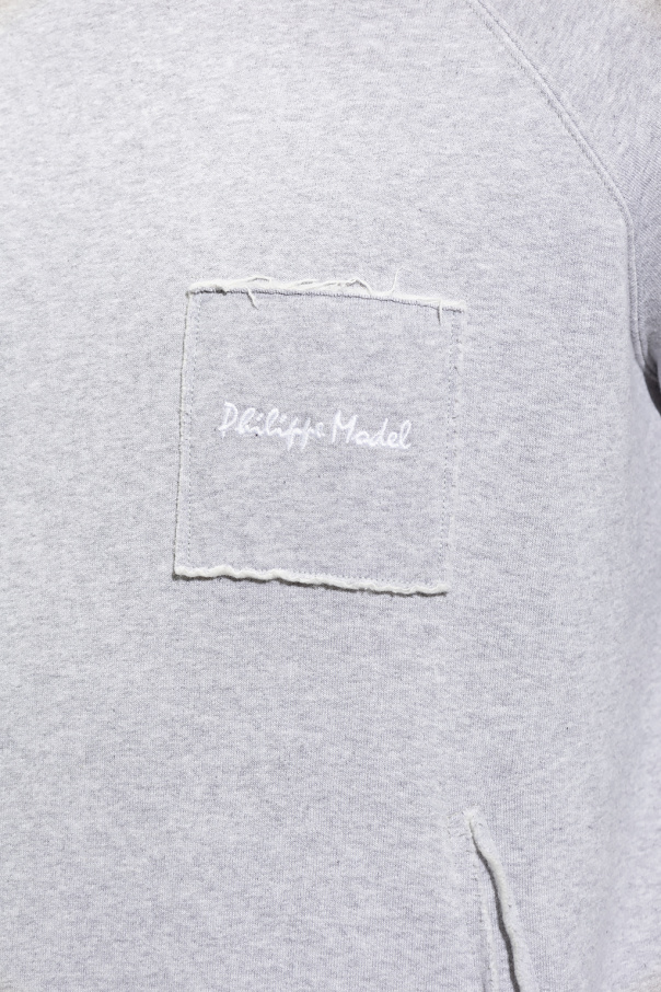 Grey ‘Jean’ hoodie from Philippe Model. Crafted from cotton jersey, this style features an embroidered logo, two frontal pockets and ribbed trims on the edges.