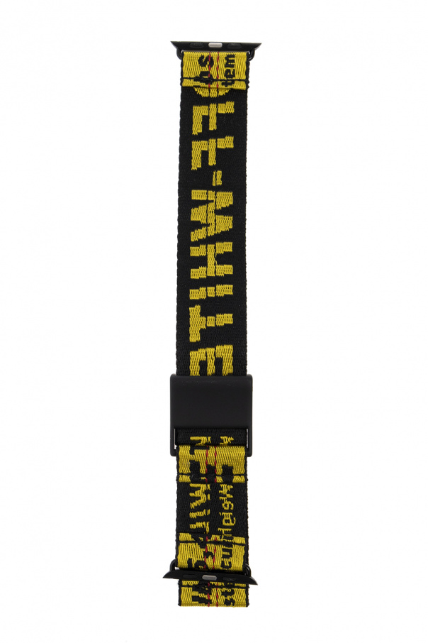 Yellow iWatch 42/44mm strap from Off-White. This item is enriched by a black logo embroidery and red stitching.