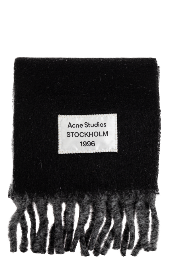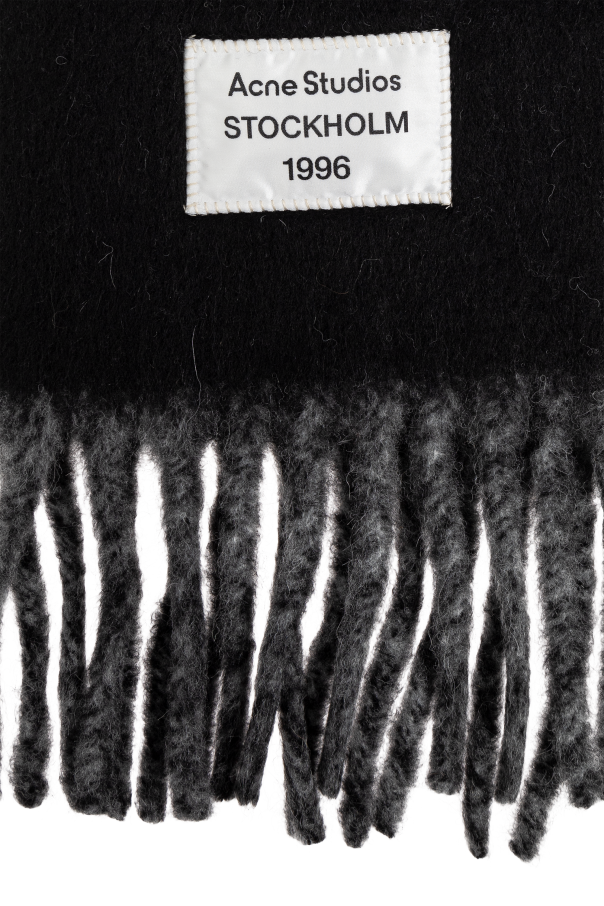 Introducing the exquisite Logo Scarf by Acne Studios, an epitome of Scandinavian minimalism and avant-garde design. This unisex accessory, in a dominant black hue with subtle gray accents, exudes an air of sophisticated elegance. Meticulously crafted from a blend of alpaca, wool, and nylon, the scarf promises unparalleled warmth and plush softness, making it a perfect companion for cooler climes. The presence of the iconic “Acne Studios STOCKHOLM 1996” patch serves as a hallmark of authenticity and style. Elegantly adorned with long, gray fringes, this scarf not only encapsulates the brand\'s commitment to high-quality textiles but also reflects its innovative spirit in fashion-forward designs. Why Consider This Product? Luxurious Material: Made with premium alpaca, wool, and nylon for ultimate comfort. Iconic Branding: Features the distinctive Acne Studios logo patch. Versatile Design: Unisex and perfect for a variety of styles. Stylish Accents: Long fringes add a chic touch to any ensemble.