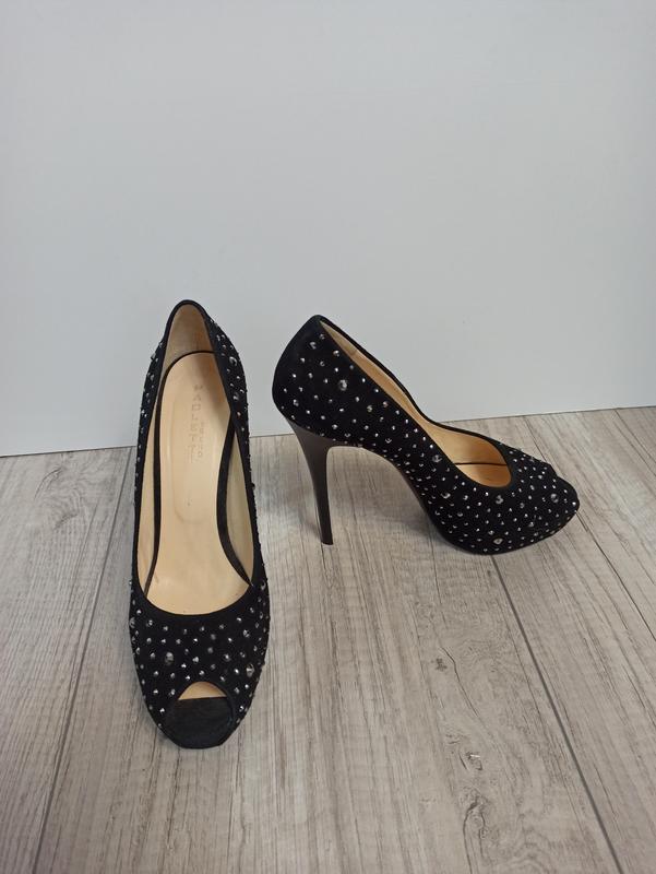 Замшевые босоножки в идеальном состоянии, все стразы на месте, высокий каблук 13,5 см. Без царапин и царапин, берется раз