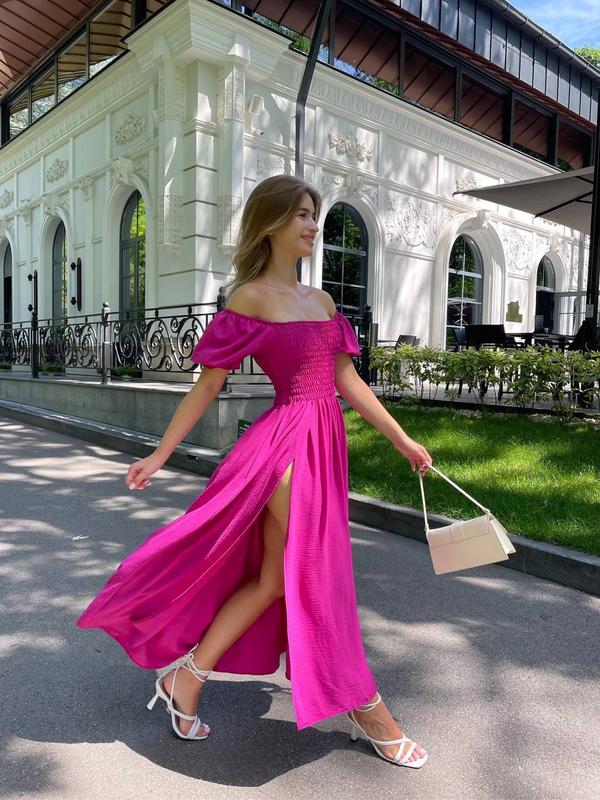 Сукня для ніжних та вишуканих жінок . Ця моделька стала трендом і підходить для повсякденного життя 💋 Дуже гарна Багато тканини Тканина креп жатка Кольори : чорний , блакитний , молоко , фуксія , жовтий , салат , зелений , морська хвиля Розмі\0р s ( 42-46 ) m ( 48-52 )