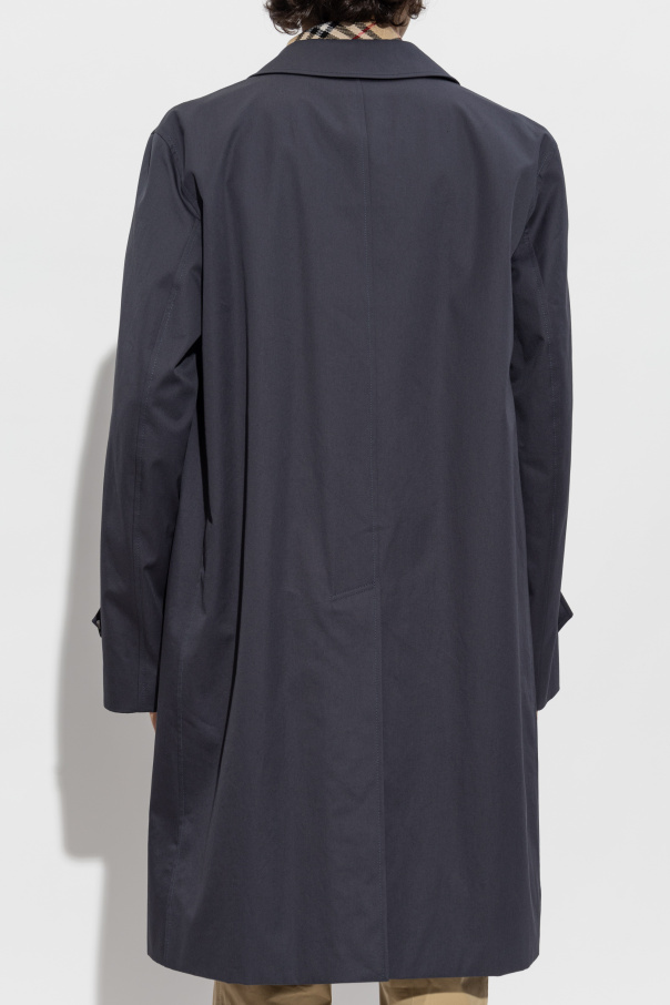 Presenting the Navy Cotton Coat from Burberry\'s exclusive collection, a testament to timeless elegance and superior craftsmanship. This sophisticated coat, rendered in a deep navy hue, boasts a straight, classic silhouette that gracefully falls just above the knee. Crafted from the finest cotton, its understated design features a classic collar and black button closure, effortlessly blending casual and elegant styles. The coat\'s sleeves are adorned with cuff straps and buttons, adding a touch of refinement, while the visible checked lining under the collar enhances its unique character. Functional yet stylish, the coat is equipped with two front welt pockets and epaulets on the sleeves, ensuring practicality without sacrificing elegance. A single vent at the back ensures ease of movement, making it perfect for various occasions. Why Choose This Product? Designed by the renowned British brand, Burberry, known for its iconic and breathable trench coats. Exquisite craftsmanship with a focus on high-quality cotton material. Combines a timeless design with modern functionality.