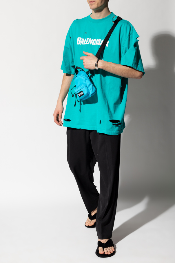 Black flip-flops from Balenciaga. Crafted from velvet, this pair features a white logo patch and black rubber sole.